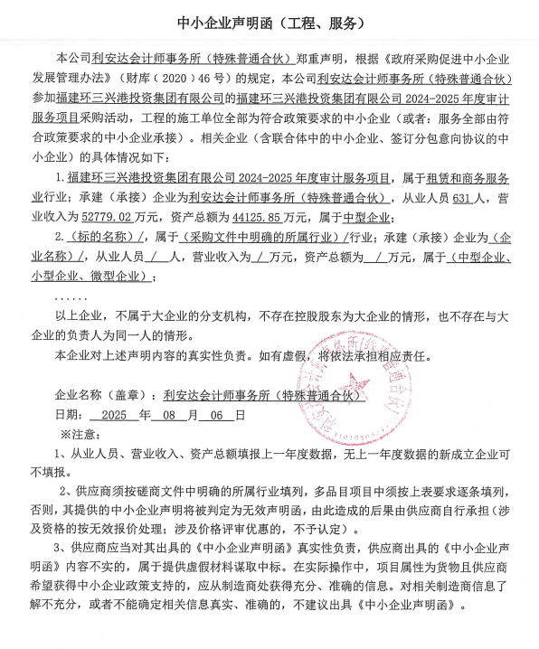 福建环三兴港投资集团有限公司2024-2025年度审计服务项目 |