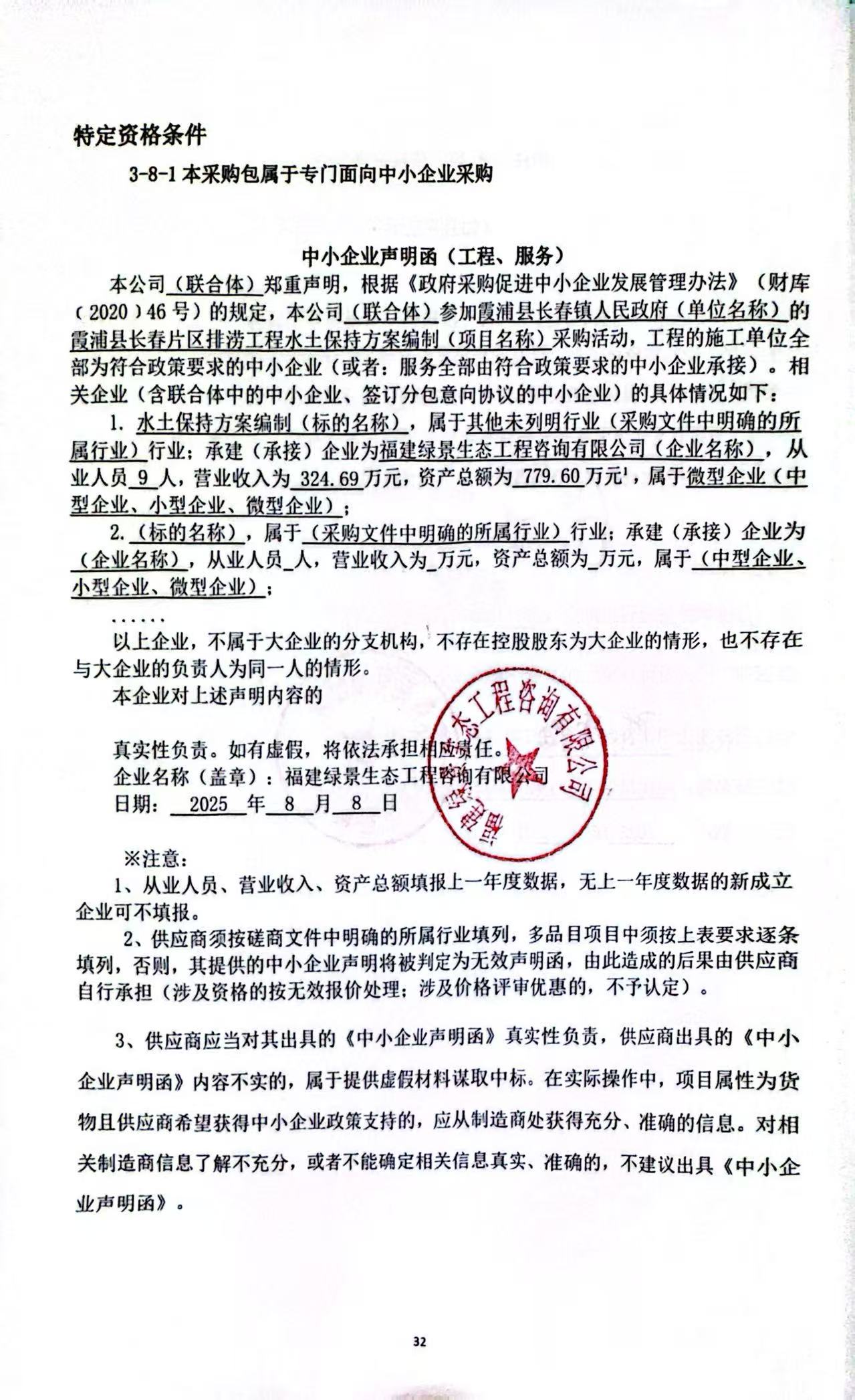 供应商名称:福建绿景生态工程咨询有限公司