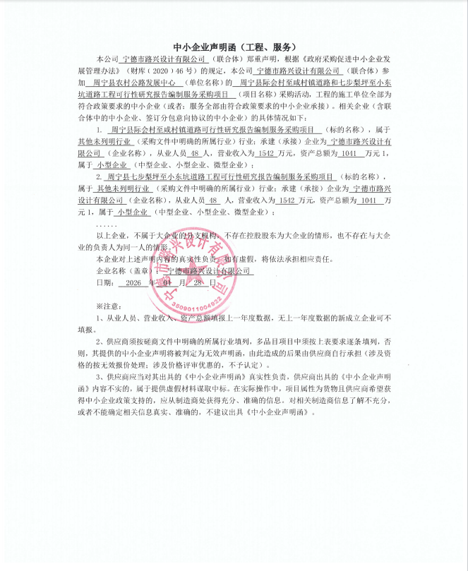 周宁县际会村至咸村镇道路和七步梨坪至小东坑道路工程可行性研究报告编制服务采购项目结果公告(采购包1)